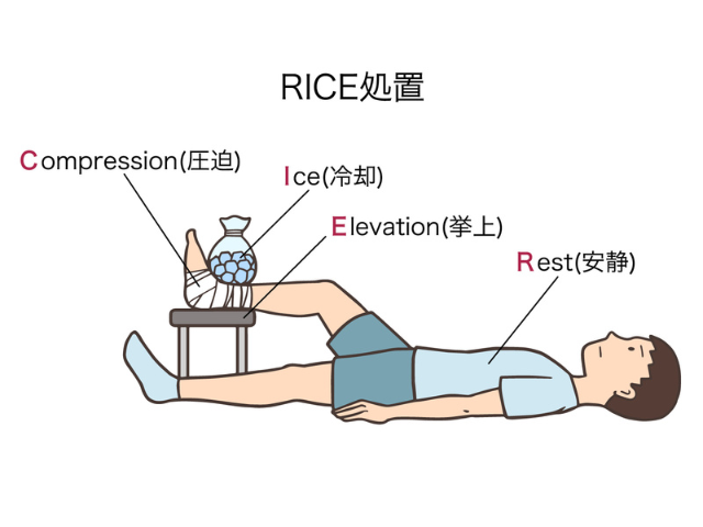 打撲した直後は、基本の応急処置である「RICE処置」を行うのがおすすめです。